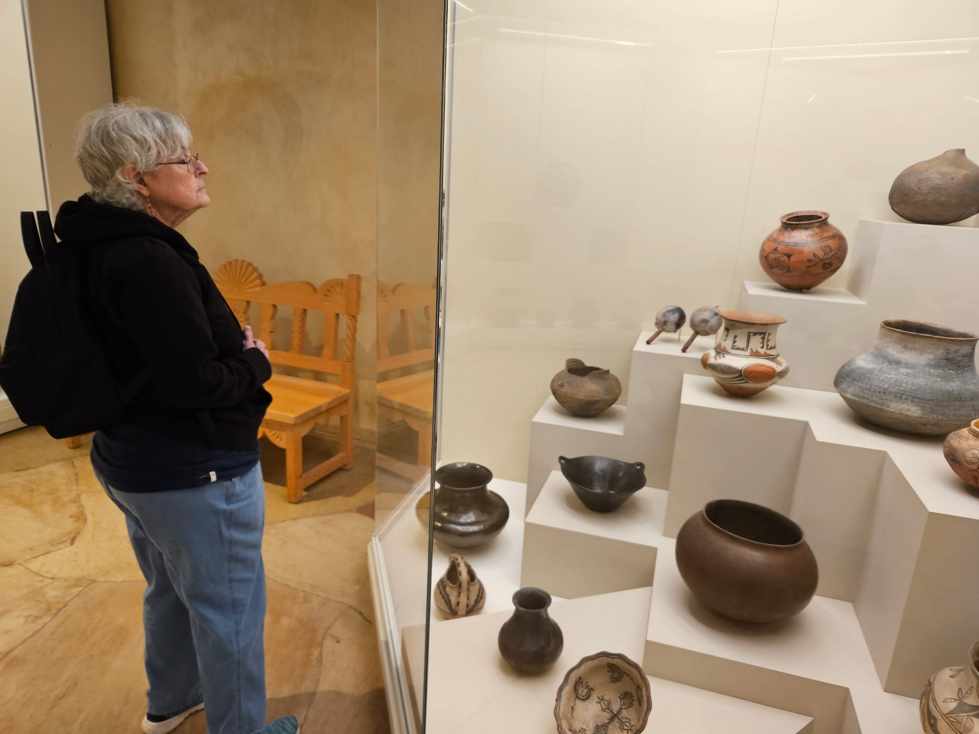 For instance, we met hundreds of recently returned, beautifully crafted pieces of pottery at the Poeh Cultural Center on the Pojoaque Pueblo, where the people are maintaining and honoring the Tewa-speaking communities and continuing to return objects taken by white institutions over the years. In their culture, every object is thought to be imbued with spirit. The return of these sometimes hundreds-of-years-old bowls and jugs and pots is, therefore, an intensely powerful thing. They’ve been welcomed home as the long-lost ancestors they are.