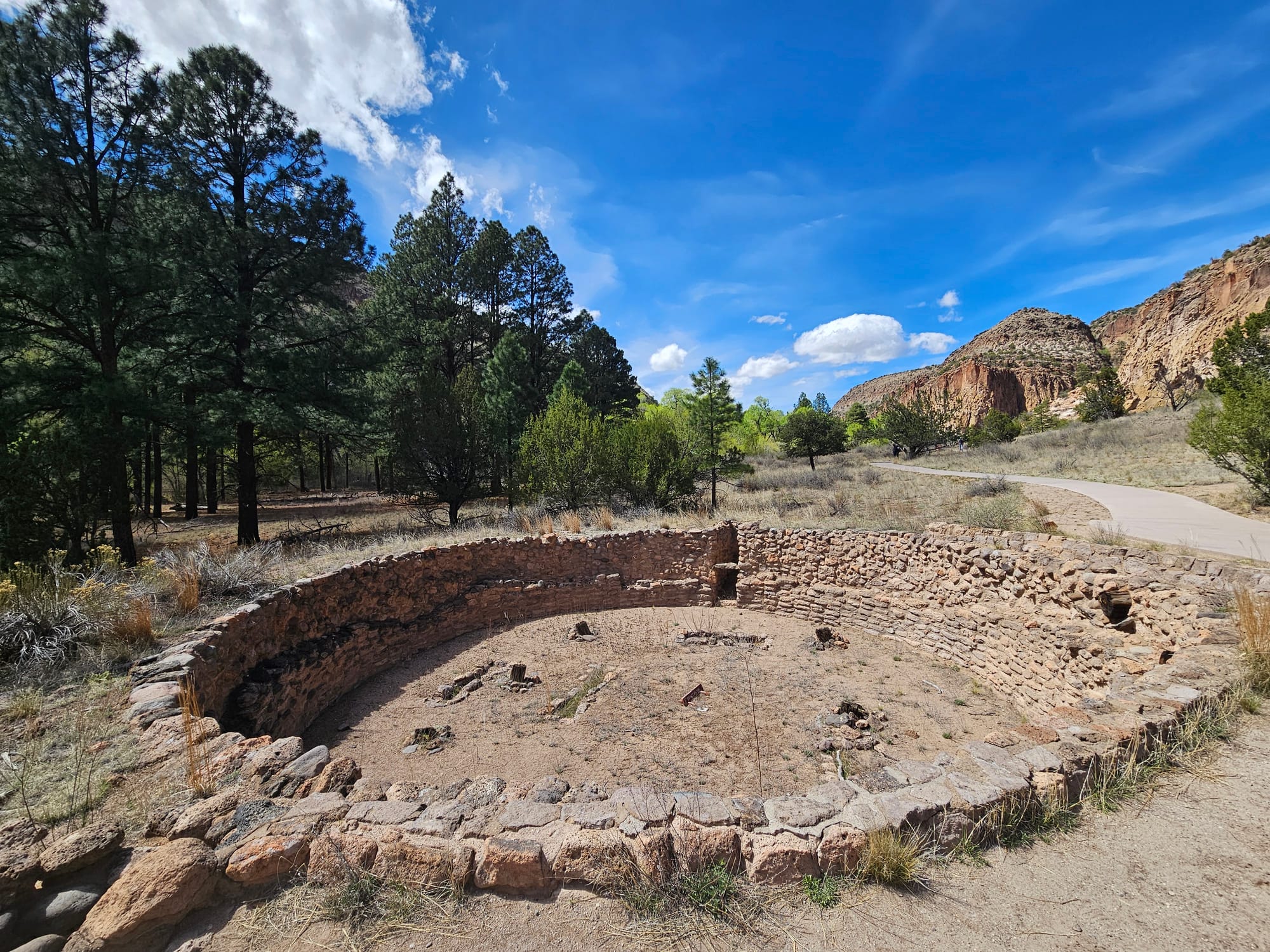 We also visited Bandelier National Monument, where we walked the Pueblo Loop Trail and saw the remains of an Ancestral Pueblo great house, great kiva, and cliff dwellings where some of the original murals can still be seen. The site was occupied from approximately 1100 to 1550 CE and is just one of hundreds of villages, cities, and outposts of an entire civilization that called the Four Corners region home for well over a thousand years. Walking in these places sometimes feels like time travel. The high, dry desert air preserves things remarkably well.
