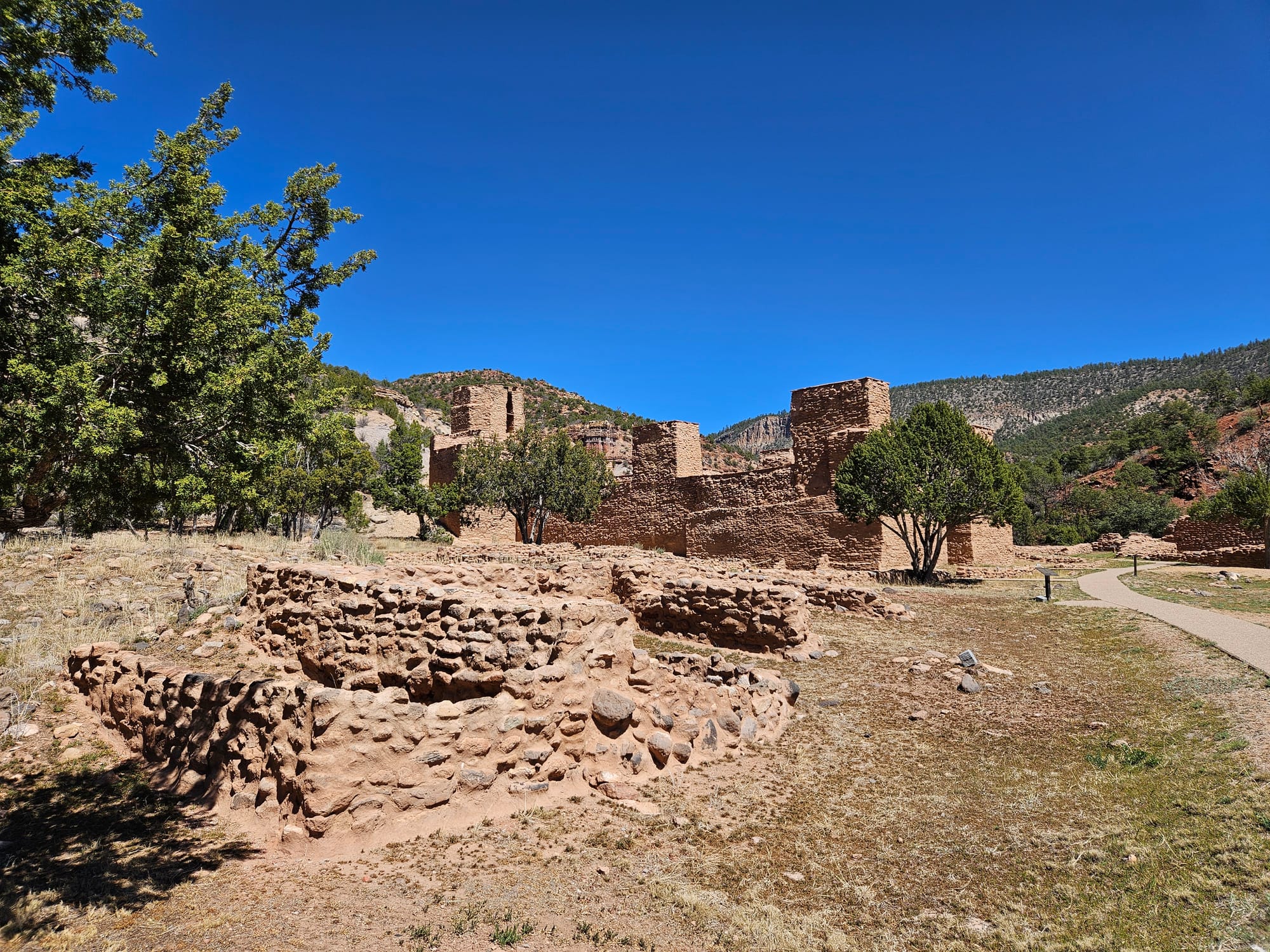 On my own time, I went to the Jemez Historic Site, where the clash of colonial Spanish power with local communities can be seen in stark relief. On the site of a 700-year-old Ancestral Pueblo village called Gisewa (now part of modern Jemez Springs, just off the Jemez Pueblo/Walatowa), the ruins of a 17th century Spanish church called San José de los Jémez loom alongside the walls and kiva of the village. It was occupied until 1680, when the various Pueblo nations united in what would become the only successful indigenous revolt against colonial powers in what’s now the United States, the Pueblo Revolt.